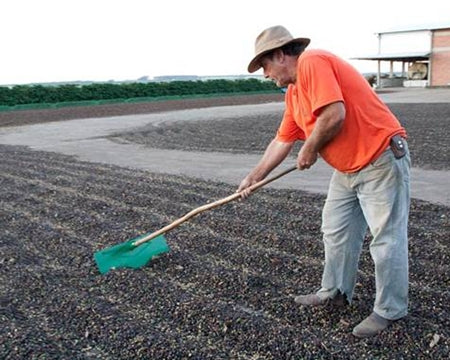 While the coffee-growing regions of Brazil are vast, this lot originates from Cooperativa Regional de Cafeicultores em Guaxupe (Cooxupe), a cooperative founded in 1937 with 14,000 active members. Each member typically manages farms averaging 60 acres in size. The coffee cherries are cultivated and harvested by individual producers, who then dry them on patios until they reach 15 percent moisture. The final drying process to achieve 11 percent moisture is done using mechanical driers. The coffee is stored meticulously until it is ready for milling and export, all of which is done at the Cooxupe dry mill. This facility ensures traceability and quality control, allowing each producer to be compensated based on the quality of their coffee. The current offering is classified as Fine Cup (FC) and Strictly Soft (SS), the highest cup quality category in Brazilian coffee grading.